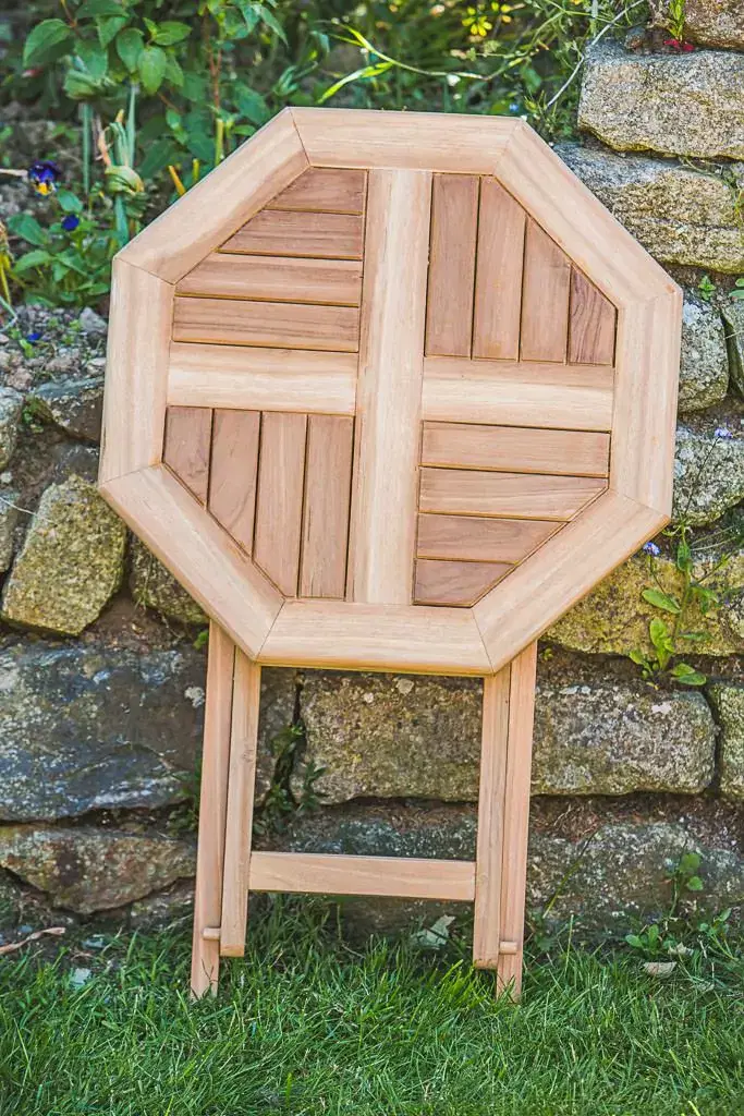 Your folding teak garden table and chairs will all come complete with an easily operated built in folding mechanism so that your teak furniture can be folded away and neatly stored. The 0.6m option is the smallest of our ever popular octagonal teak tables however it is very robust and sturdy offering you great versatility and stability. Our folding teak garden chairs are of a similar classical design to your garden table resulting in a well balanced package.